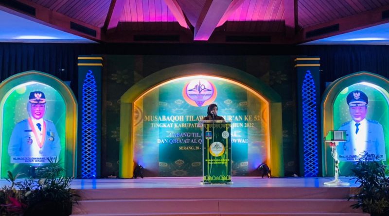 SERANG,jejakbanten.com – Sebanyak 1.595  kafilah di Kabupaten Serang bersaing jadi yang terbaik di ajang Musabaqah Tilawatil Qur’an (MTQ) ke-52 tahun 2022. Kepastian ini diketahui, usai ajang tersebut dibuka langsung Bupati Serang Ratu Tatu Chasanah pada Senin (28/3/2022).