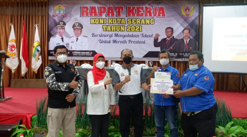 Rizki diberi kadeudeuh berupa uang pembinaan dari KONI Kota Serang pada saat pelaksanaan Rapat Kerja Kota (Rakerkot) yang berlangsung di salah satu hotel di Kota Serang, Sabtu (5/6/2021).