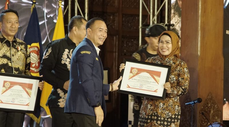 SERANG,jejakbanten.com – Bupati Serang Ratu Tatu Chasanah meraih penghargaan Satyalancana Aditya Karya Mahatva Yodha (AKMY) dari Pengurus Nasional Karang Taruna Nasional (PNKT). Apresiasi ini diserahkan langsung oleh Ketua Umum PNKT Didik Mukriyanto pada AKMY Award 2022 di Pendopo Walikota Surakarta, Jawa Tengah, Rabu (30/11/2022) malam.