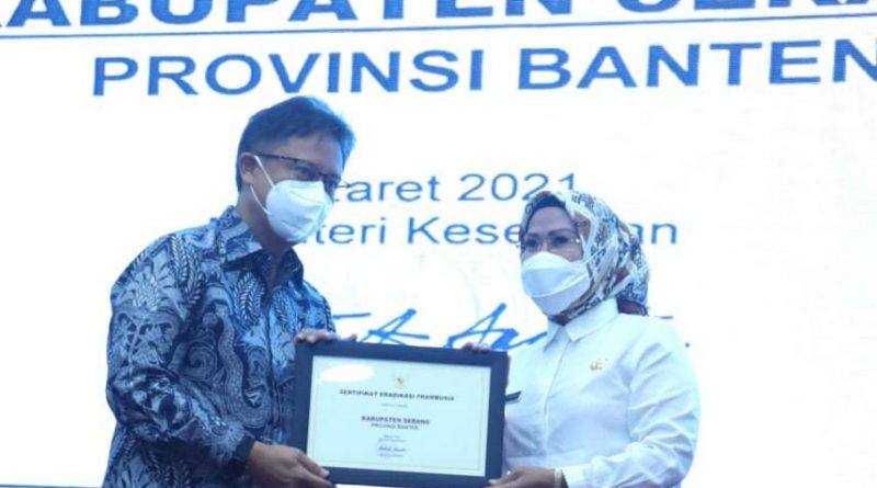 SERANG,jejakbanten.com – Pemerintah Kabupaten (Pemkab) Serang meraih penghargaan dari Kementerian Kesehatan. Ini atas upaya eradikasi frambusia selama lima tahun terakhir.