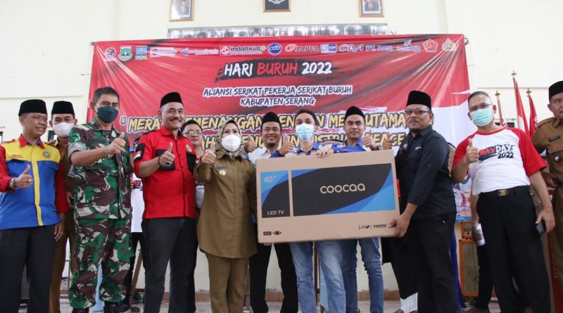 SERANG,jejakbanten.com – Bupati Serang Ratu Tatu Chasanah turut memeriahkan Peringatan Hari Buruh (May Day) 2022 bersama Aliansi Serikat Pekerja Serikat Buruh Kabupaten Serang dan perusahaan. Acara berlangsung di Gedung PGRI Kecamatan Jawilan, Selasa (31/5/2022).
