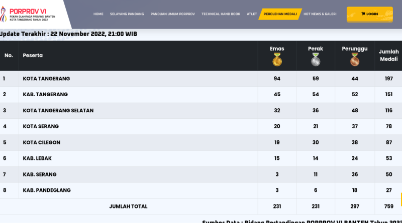 Alasannya, data perolehan medali yang ditampilkan pada klasemen sementara di website resmi Porprov VI Banten tertinggal jauh, dibandingkan data yang telah dikumpulkan oleh pihaknya.