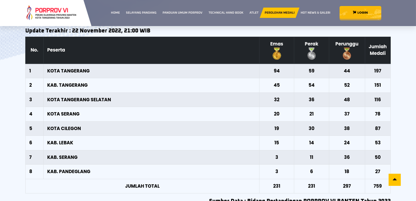 TANGERANG, jejakbanten.com – Kontingen Kota Serang mengeluhkan update klasemen sementara Porprov VI Banten, karena mereka menilai pembaruan data di tabel dinilai lambat.