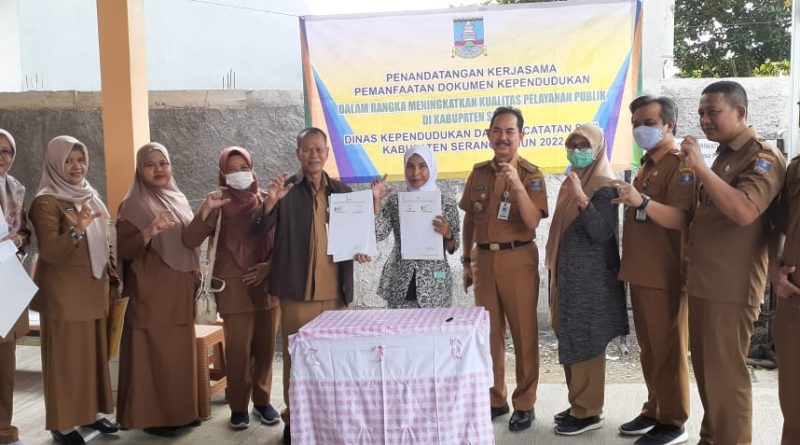SERANG,jejakbanten.com – Dinas Kependudukan dan Pencatatan Sipil (Disdukcapil) Kabupaten Serang terus melakukan inovasi dalam meningkatkan pelayanan administrasi kependudukan atau adminduk kepada masyarakat. Yakni, dengan meningkatkan pelaksanaan perjanjian kerjasama dengan berbagai pihak untuk melanjutkan pelayanan 3 in 1.