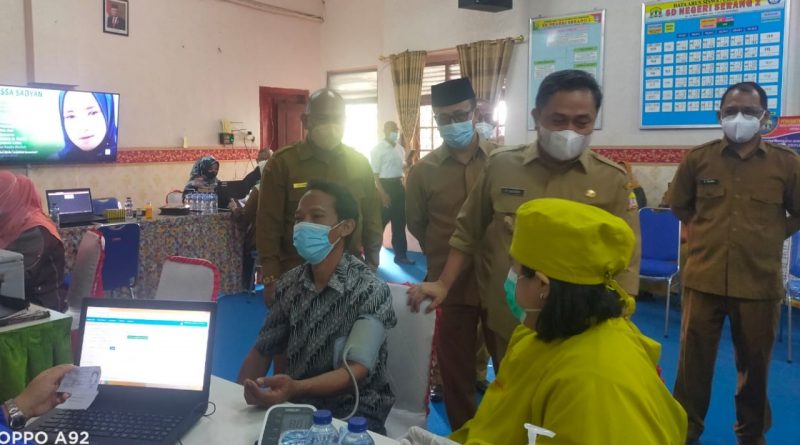 SERANG, jejakbanten.com – Dinas Pendidikan dan Kebudayaan (Dindikbud) Kota Serang menggelar acara vaksinasi Covid-19 untuk guru sebanyak 2.000 dosis vaksin, yang ditinjau langsung Wakil Walikota Serang Subadri Ushuludin dan didampingi Kepala Dindikbud Kota Serang, Alpendi. Acara tersebut bertempat di Sekolah Dasar Negeri (SDN) 2 Kota Serang, Senin (9/8/2021).