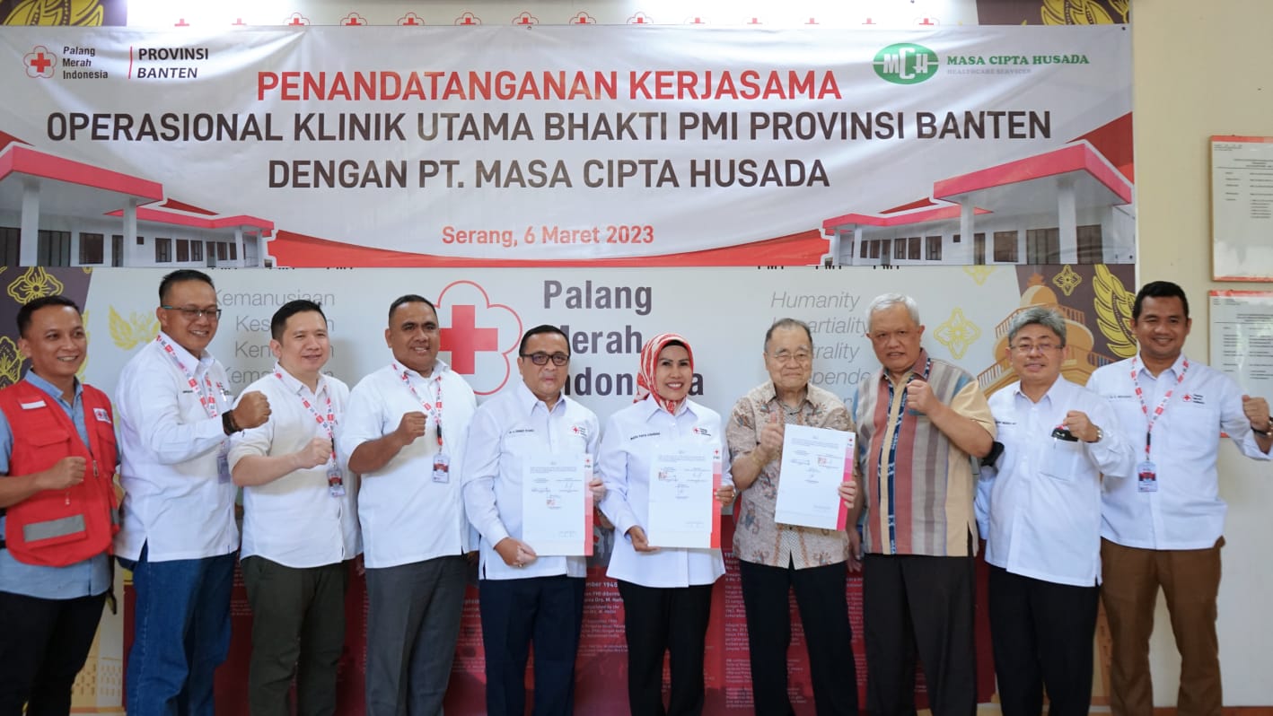 SERANG,jejakbanten.com – Palang Merah Indonesia (PMI) Provinsi Banten resmi menandatangani perjanjian kerja sama dengan PT Masa Cipta Husada (MCH) dalam bidang pelayanan hemodialisis. Perjanjian ini berkaitan dengan pembangunan Klinik Utama Bhakti PMI Provinsi Banten yang sudah selesai pada tahap satu.