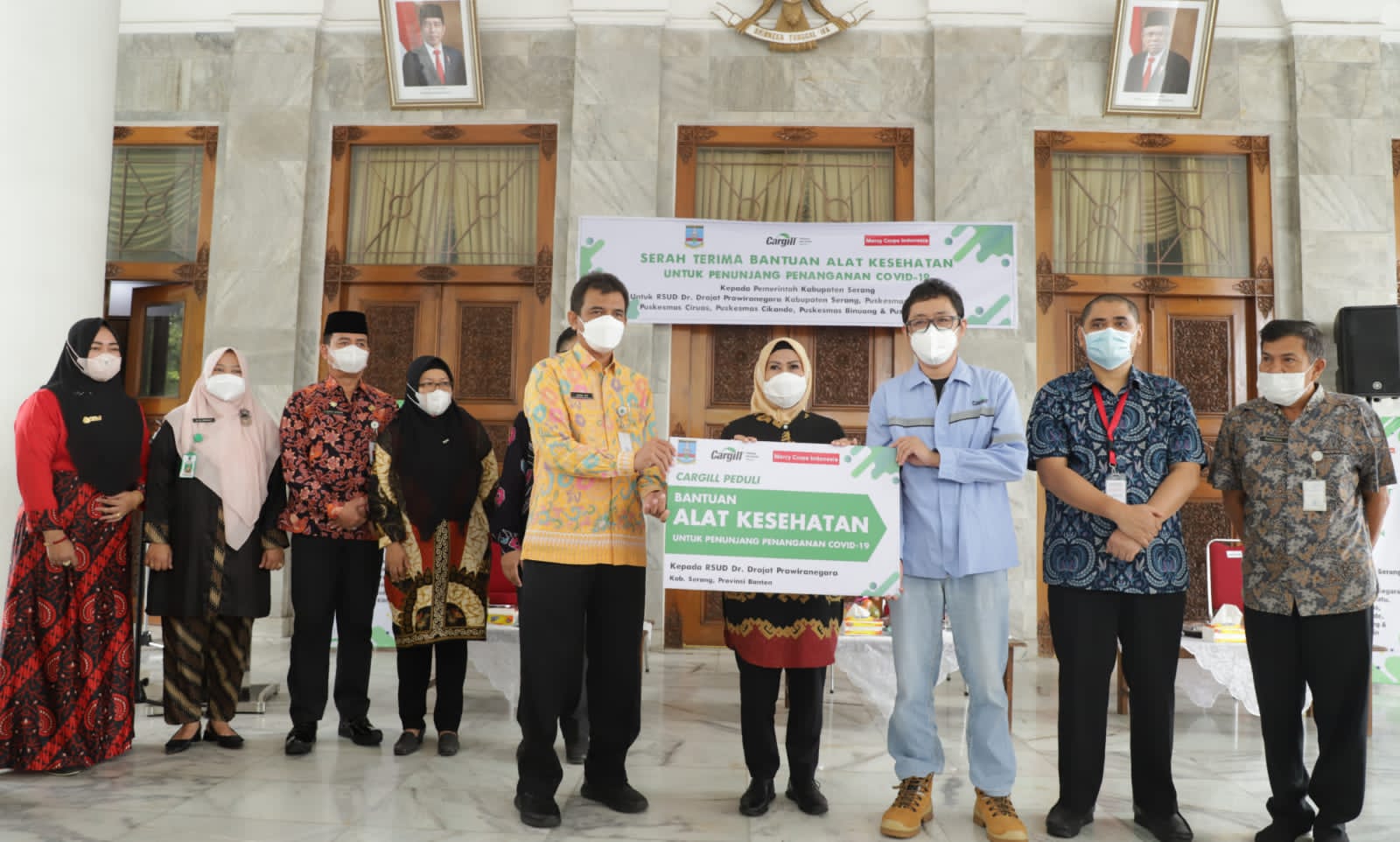 Sumbangan diberikan oleh Dudi Iswara, Plant Manager Serang-PT Cargill Indonesia dan diterima langsung Bupati Serang Ratu Tatu Chasanah dan sejumlah pimpinan fasilitas kesehatan (faskes) penerima CSR. “Bantuan itu kami berikan untuk membantu fasilitas kesehatan, terutama meningkatkan kapasitas dalam menghadapi kemungkinan gelombang ketiga Covid-19, yakni varian Omicron,” ujar Dudi di Pendopo Bupati Serang, Kamis (20/1/2022).