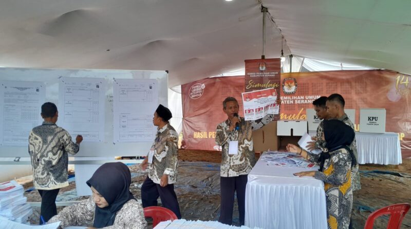 SERANG,jejakbanten.com – Jelang Pemilihan Umum (Pemilu) 2024 yang semakin dekat, Komisi Pemilihan Umum (KPU) Kabupaten Serang menggelar simulasi pemungutan dan penghitungan suara yang digelar di Desa Cinangka, Kecamatan Cinangka, Kabupaten Serang, Rabu (31/1/2024).