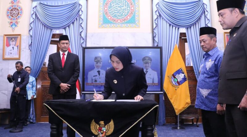 SERANG,jejakbanten.com – Bupati Serang Ratu Rachmatuzakiyah melantik Zaldi Dhuhana menjadi Sekretaris Daerah (Sekda) Kabupaten Serang di Pendopo Bupati pada Kamis (21/8/2025). Zakiyah pun memastikan bahwa pelantikan merupakan hasil open bidding dan tidak ada jual beli jabatan.