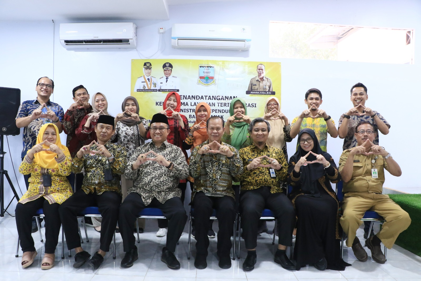 Penandatangan PKS pelayanan adminduk terintegrasi balung anak (bayi lahir langsung untuk akta kelahiran, Kartu Keluarga (KK) dan Kartu Identitas Anak (KIA), pelayanan penerbitan akta kematian dan pelayanan kesehatan dilakukan oleh Kepala Disdukcapil Kabupaten Serang, Abdullah dan Direktur Rs Budi Asih, dr Tajus Ibrahim.