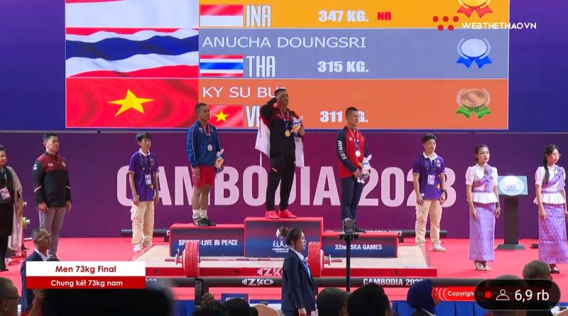 Sementara diperingkat kedua ditempati oleh Anucha Doungsri dari Thailand yang mengangkat 140 kg Snatch, lalu 175 kg Clean and Jerk dengan total 315 kg. Kemudian diperingkat ketiga ditempati lifter asal Vietnam dengan angkatan 136 kg Snatch, 175 kg Clean and Jerk, dengan total angkatan 311 Kg.