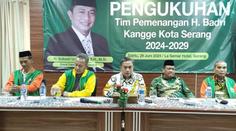 SERANG, jejakbanten.com – Bakal Calon Walikota Serang, Subadri Ushuludin mengukuhkan sejumlah relawan Tim MENANG sebagai persiapan menjelang pendaftaran pencalonan Pemilihan Kepala Daerah (Pilkada) Kota Serang pada 27 November 2024 mendatang.