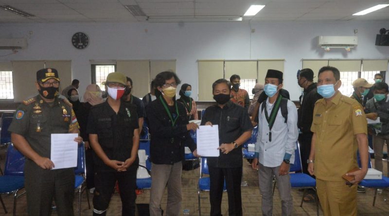 SERANG, jejakbanten.com – Wakil Walikota Serang Subadri Usuludin menyabut hangat masa aksi yang tergabung dari Himpunan Mahasiswa Islam Majelis Penyelamat Organisasi (HMI MPO) Serang. Mereka menyuarakan penolakannya terhadap Undang-undang (UU) Cipta Kerja atau Omnibus Law di kantor Pemerintah Kota (Pemkot) Serang, Rabu (13/10/2020).