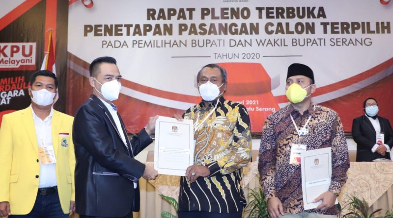 SERANG,jejakbanten.com – KPU Kabupaten Serang menetapkan pasangan calon nomor urut satu yakni Ratu Tatu Chasanah-Pandji Tirtayasa (Tatu-Pandji) sebagai calon Bupati-Wakil Bupati Serang terpilih. Pemilihan Kepala Daerah (Pilkada) Kabupaten Serang yang dinilai paling rawan pun terbantahkan.